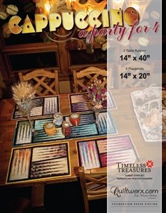 | Requirements: | Cappuccino Pattern Fabric Requirements: 36 2 1/2" assorted lights, mediums, and darks 5/8 yd sashing 5/8 yd binding 12" Add-a-Quarter ruler Cardstock or template plastic 3"x12" glue stick |